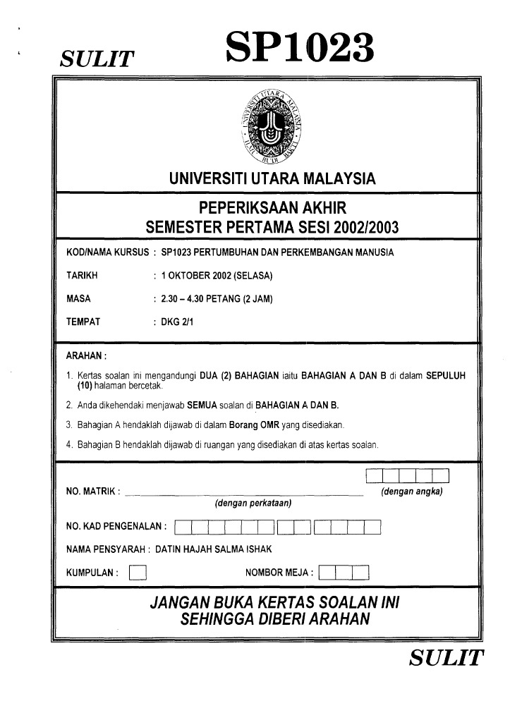 Markah untuk tiap-tiap soalan diberikan dalam tanda kurung Kertas soalan ini terdiri daripada 6 halaman bercetak. Simpan Simpan pga101-kuliah 1 Untuk Nanti. KOLEKSI SOALAN UJIAN PEPERIKSAAN TAHUN 1.
